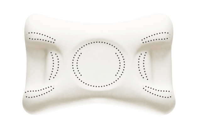 Les zones de ventilation de l'oreiller empêchent l'accumulation de chaleur. Les trous sont quant à eux concentrés autour des joues et des yeux, zones les plus sujettes aux gonflements.
